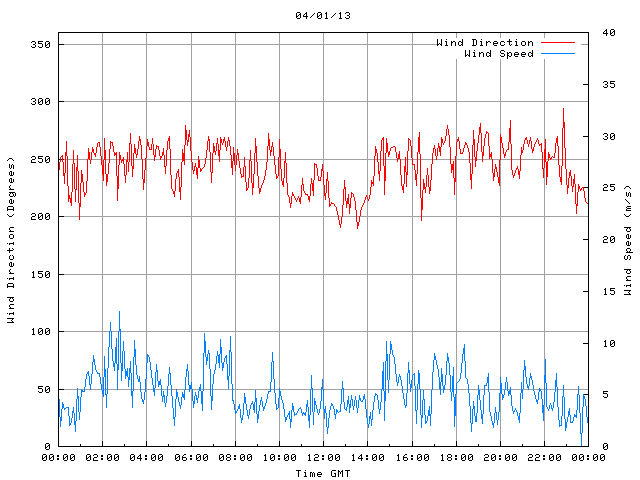 - Max Wind Speed: 13.1 ms-1 Time: 2:46:09 GMT