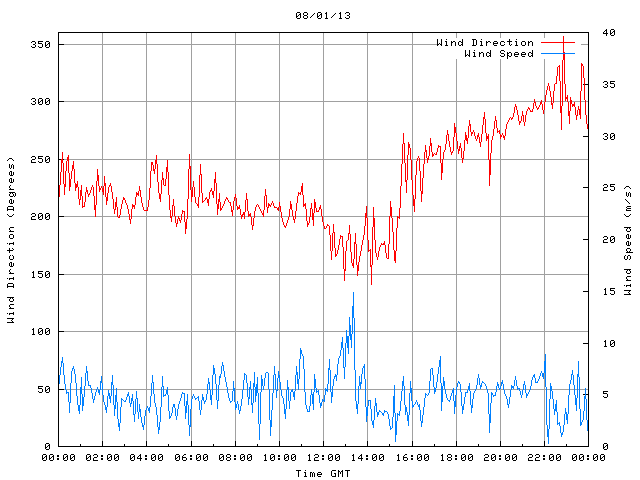 - Max Wind Speed: 14.9 ms-1 Time: 13:21:09 GMT