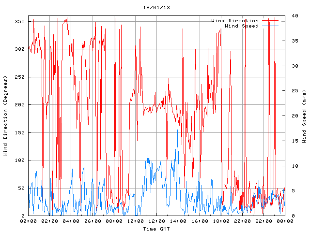- Max Wind Speed: 17.2 ms-1 Time: 13:56:09 GMT