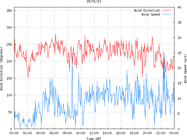 - Max Wind Speed: 25.0 ms-1 Time: 8:41:09 GMT