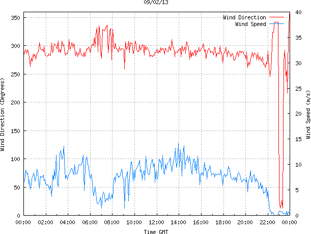 - Max Wind Speed: 14.1 ms-1 Time: 13:56:09 GMT