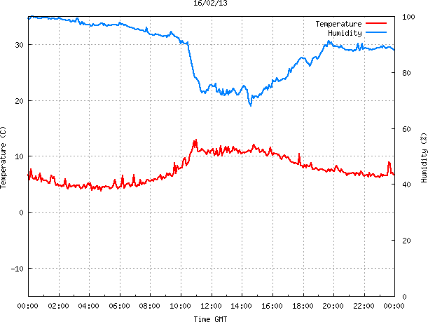 - Max Temp: 13.0 °C Time: 11:01:09 GMT
