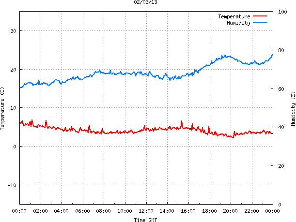 - Max Temp: 6.8 °C Time: 1:11:09 GMT