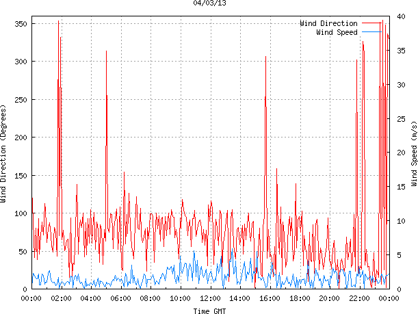 - Max Wind Speed: 6.0 ms-1 Time: 13:26:09 GMT