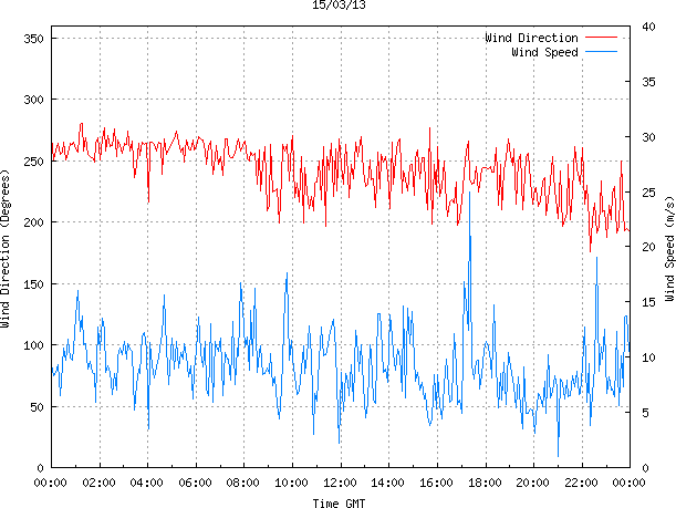 - Max Wind Speed: 25.0 ms-1 Time: 17:21:09 GMT