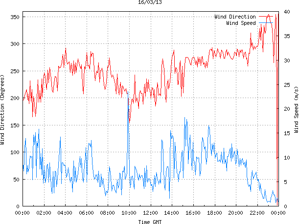 - Max Wind Speed: 23.6 ms-1 Time: 9:51:09 GMT