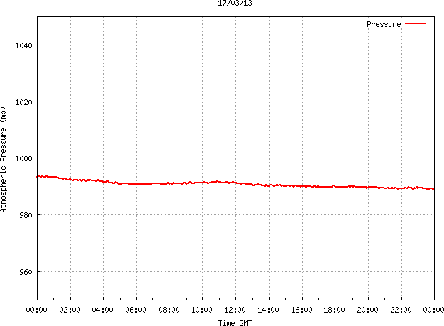 The PML meteorological station, situated on the south-west corner of the building roof, consists of a Hygroclip S3 temperature and humidity sensor housed in a radiation shield, a Mierij Meteo solid state wind sensor (MMW-005), a Chelsea instruments half-hemisphere PAR sensor, a Li-Cor pyranometer (LI-200SZ) and an Omni Instruments 6" tipping bucket raingauge (RG200). The data are logged every 5 minutes using a Pace Scientific XR5 data logger. The real-time rainfall data is likely in error - the correct values will be displayed after a time lag of approximately 24 hours. The meteorological station is sheltered from winds in the north-east and underestimates winds from this quarter. To use these data please contact Dr Tim Smyth.