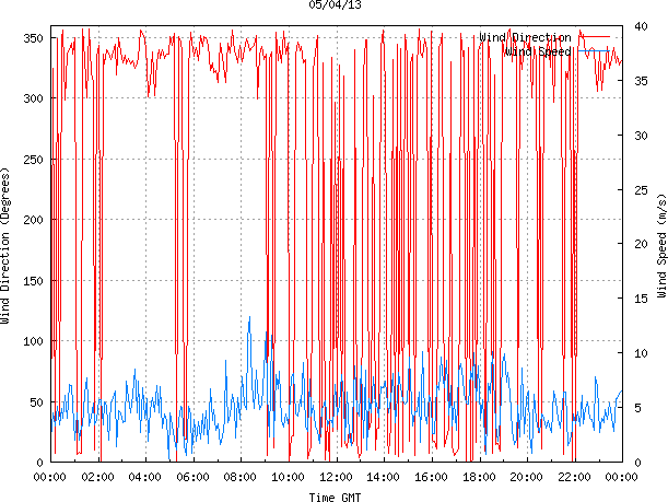 - Max Wind Speed: 13.3 ms-1 Time: 8:21:09 GMT