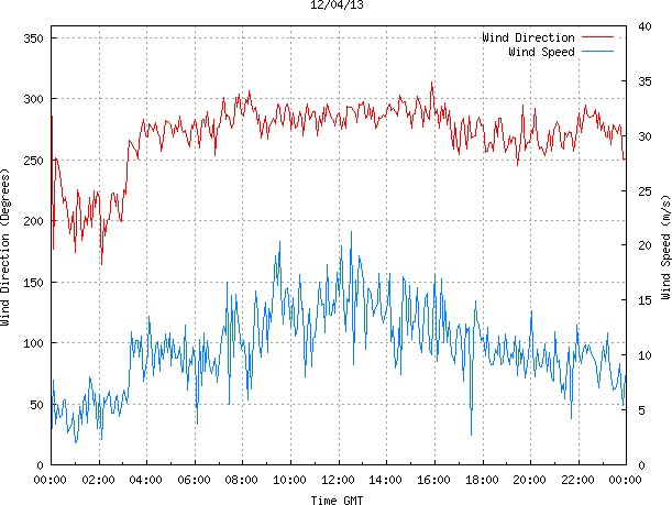 - Max Wind Speed: 21.3 ms-1 Time: 12:31:09 GMT