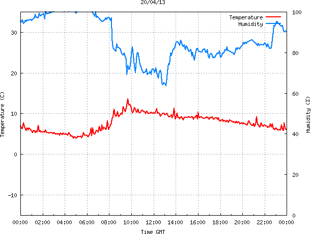 - Max Temp: 13.6 °C Time: 9:41:09 GMT