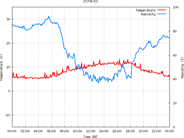 - Max Temp: 13.2 °C Time: 16:21:09 GMT