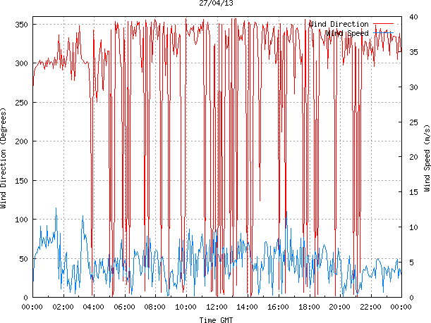 - Max Wind Speed: 12.7 ms-1 Time: 1:31:09 GMT