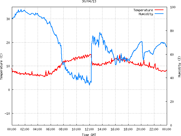 - Max Temp: 14.9 °C Time: 12:06:09 GMT