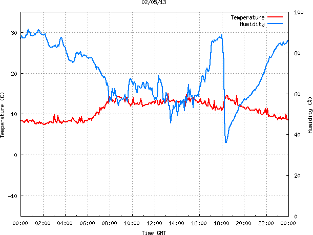 - Max Temp: 14.9 °C Time: 13:11:09 GMT