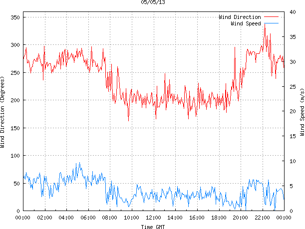 - Max Wind Speed: 9.7 ms-1 Time: 5:11:09 GMT