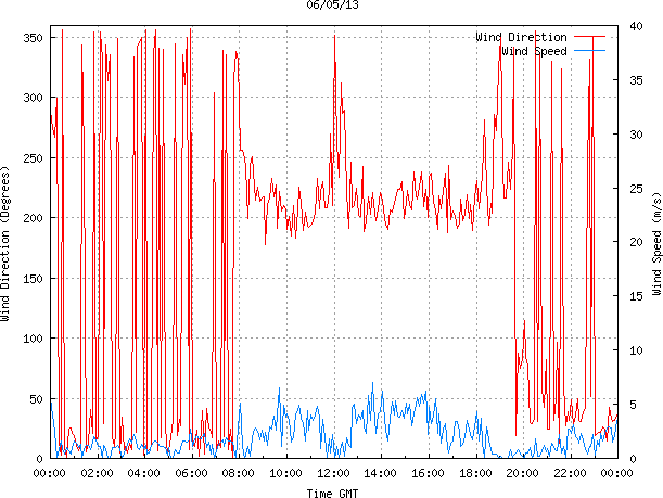 - Max Wind Speed: 7.0 ms-1 Time: 13:36:09 GMT