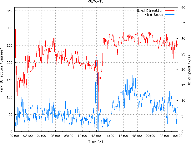 - Max Wind Speed: 24.9 ms-1 Time: 12:06:09 GMT