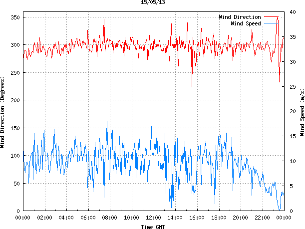 - Max Wind Speed: 18.0 ms-1 Time: 7:41:09 GMT