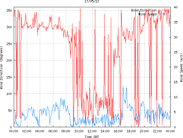 - Max Wind Speed: 13.6 ms-1 Time: 16:41:09 GMT