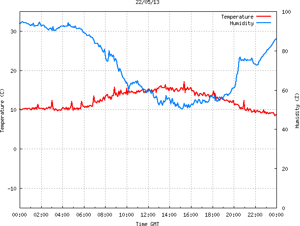 - Max Temp: 17.0 °C Time: 15:21:09 GMT