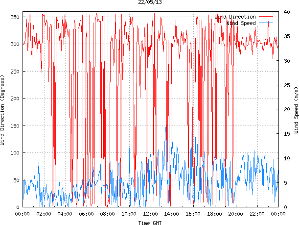 - Max Wind Speed: 16.9 ms-1 Time: 13:26:09 GMT