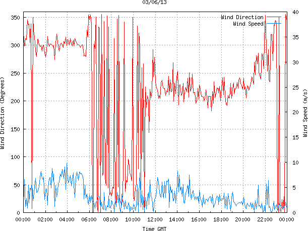 - Max Wind Speed: 9.8 ms-1 Time: 3:56:09 GMT