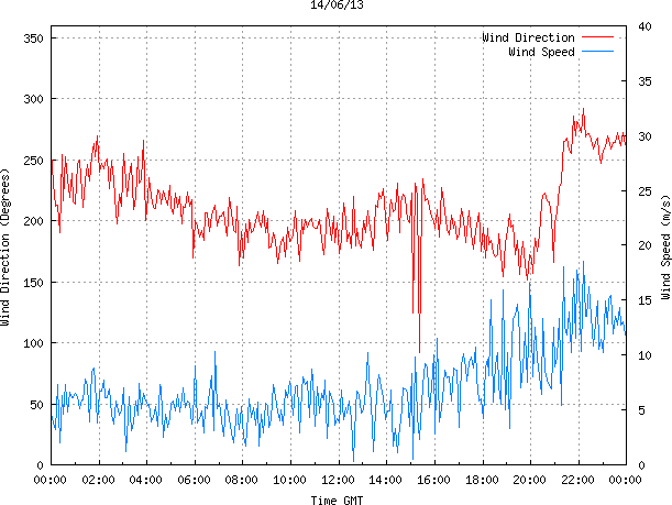 - Max Wind Speed: 18.6 ms-1 Time: 22:11:09 GMT