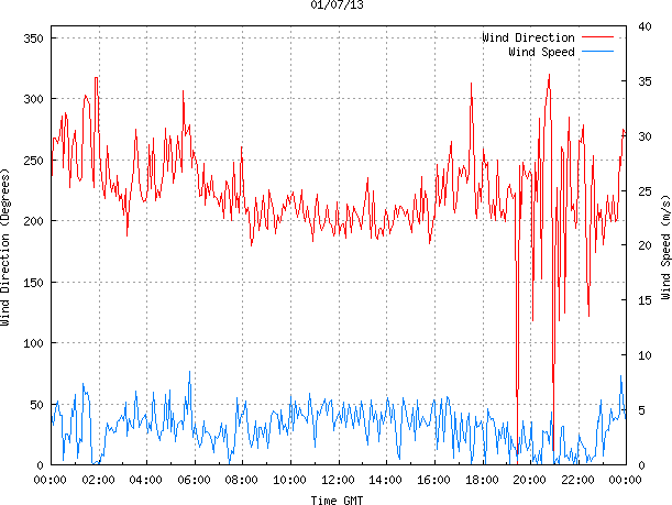 - Max Wind Speed: 8.5 ms-1 Time: 5:46:09 GMT