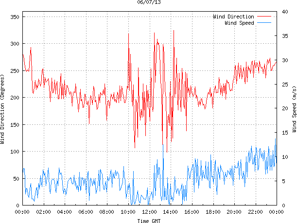 - Max Wind Speed: 13.7 ms-1 Time: 23:51:09 GMT