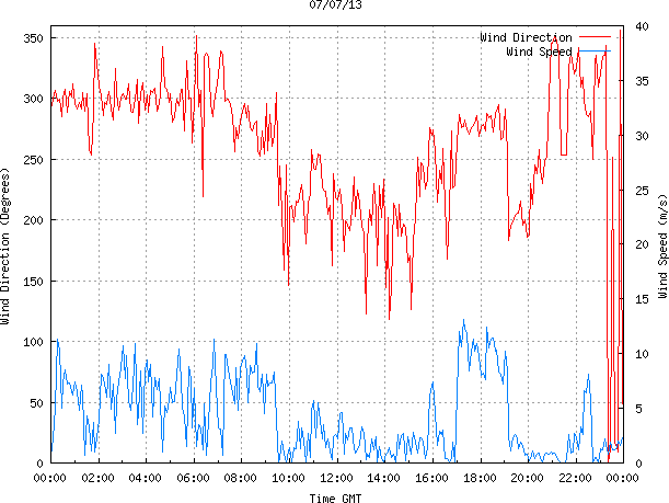 - Max Wind Speed: 13.1 ms-1 Time: 17:16:09 GMT