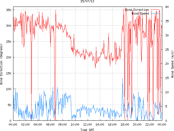 - Max Wind Speed: 14.8 ms-1 Time: 17:36:09 GMT