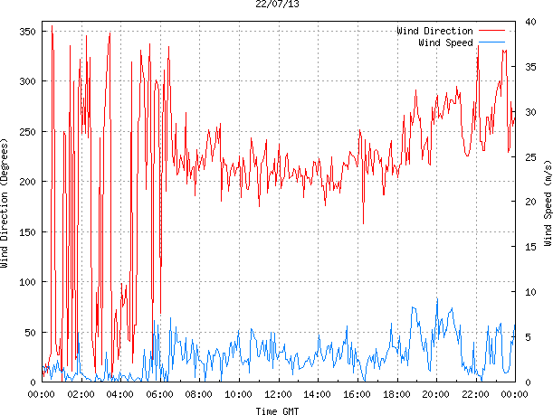 - Max Wind Speed: 9.2 ms-1 Time: 20:01:09 GMT
