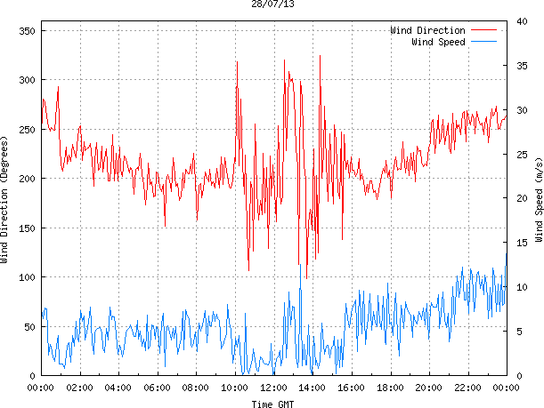 - Max Wind Speed: 13.7 ms-1 Time: 23:56:09 GMT