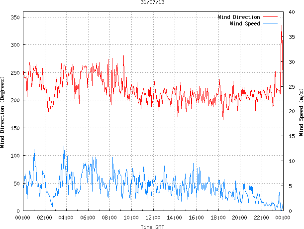- Max Wind Speed: 13.1 ms-1 Time: 3:46:09 GMT