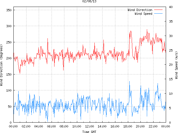 - Max Wind Speed: 14.2 ms-1 Time: 18:16:09 GMT