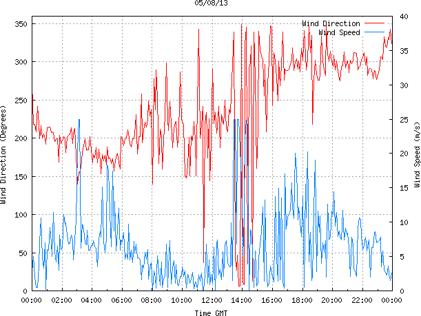- Max Wind Speed: 24.9 ms-1 Time: 3:06:09 GMT