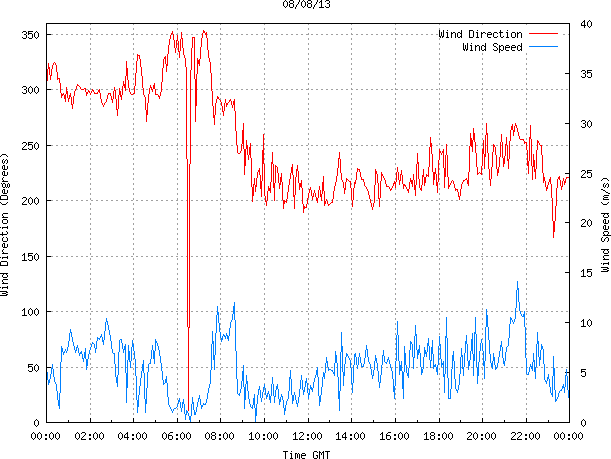 - Max Wind Speed: 14.1 ms-1 Time: 21:36:09 GMT
