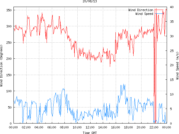 - Max Wind Speed: 13.6 ms-1 Time: 17:11:09 GMT