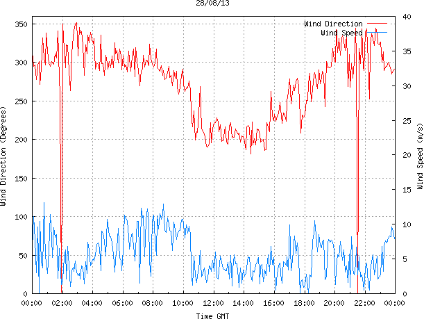 - Max Wind Speed: 13.2 ms-1 Time: 0:46:09 GMT