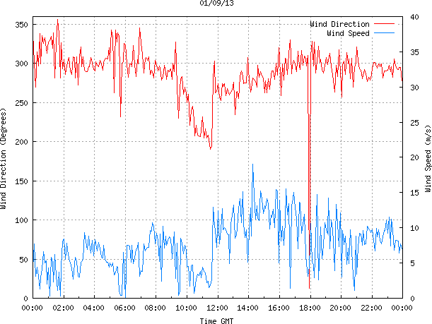 - Max Wind Speed: 19.0 ms-1 Time: 14:16:09 GMT