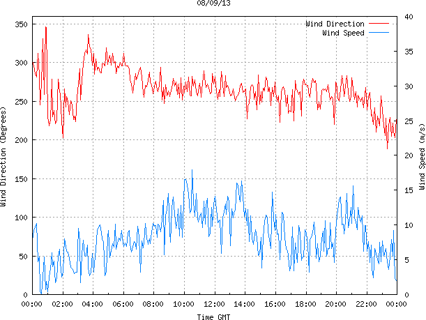 - Max Wind Speed: 17.9 ms-1 Time: 10:31:09 GMT