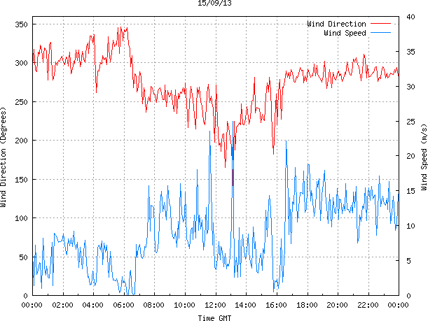 - Max Wind Speed: 25.0 ms-1 Time: 13:06:09 GMT