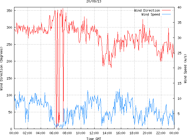 - Max Wind Speed: 13.1 ms-1 Time: 15:46:09 GMT