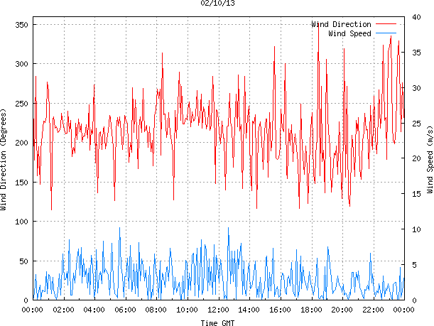 - Max Wind Speed: 10.2 ms-1 Time: 5:36:09 GMT