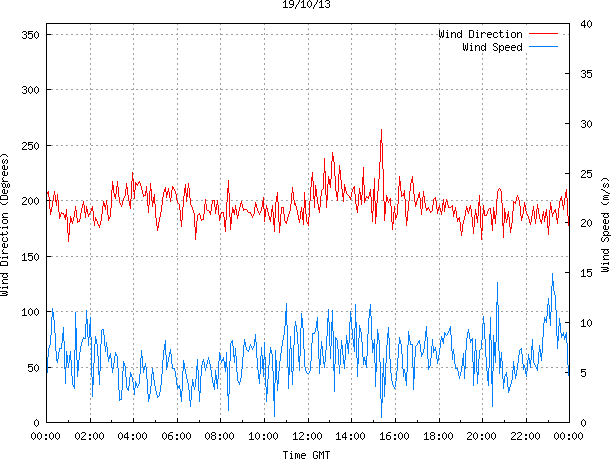 - Max Wind Speed: 14.9 ms-1 Time: 23:11:09 GMT