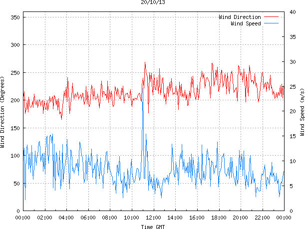 - Max Wind Speed: 24.6 ms-1 Time: 11:01:09 GMT