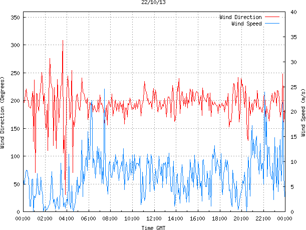 - Max Wind Speed: 24.6 ms-1 Time: 7:26:09 GMT