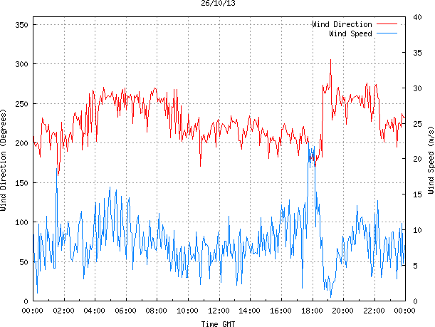 - Max Wind Speed: 22.2 ms-1 Time: 17:46:09 GMT