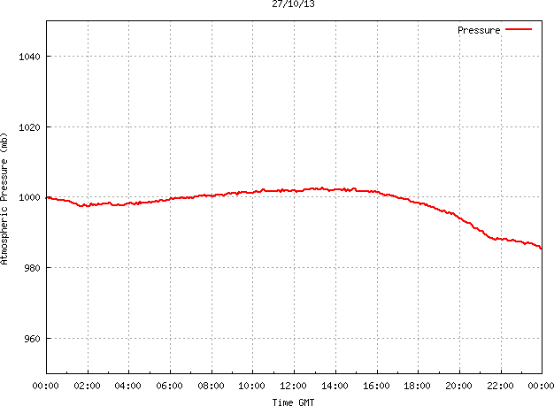 The PML meteorological station, situated on the south-west corner of the building roof, consists of a Hygroclip S3 temperature and humidity sensor housed in a radiation shield, a Mierij Meteo solid state wind sensor (MMW-005), a Chelsea instruments half-hemisphere PAR sensor, a Li-Cor pyranometer (LI-200SZ) and an Omni Instruments 6" tipping bucket raingauge (RG200). The data are logged every 5 minutes using a Pace Scientific XR5 data logger. The real-time rainfall data is likely in error - the correct values will be displayed after a time lag of approximately 24 hours. The meteorological station is sheltered from winds in the north-east and underestimates winds from this quarter. To use these data please contact Dr Tim Smyth.