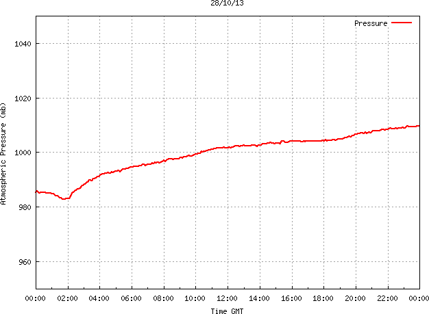 The PML meteorological station, situated on the south-west corner of the building roof, consists of a Hygroclip S3 temperature and humidity sensor housed in a radiation shield, a Mierij Meteo solid state wind sensor (MMW-005), a Chelsea instruments half-hemisphere PAR sensor, a Li-Cor pyranometer (LI-200SZ) and an Omni Instruments 6" tipping bucket raingauge (RG200). The data are logged every 5 minutes using a Pace Scientific XR5 data logger. The real-time rainfall data is likely in error - the correct values will be displayed after a time lag of approximately 24 hours. The meteorological station is sheltered from winds in the north-east and underestimates winds from this quarter. To use these data please contact Dr Tim Smyth.